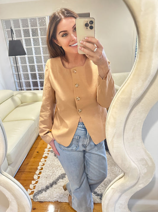 RAYA LINEN BLEND BLAZER/TOP - CREAM